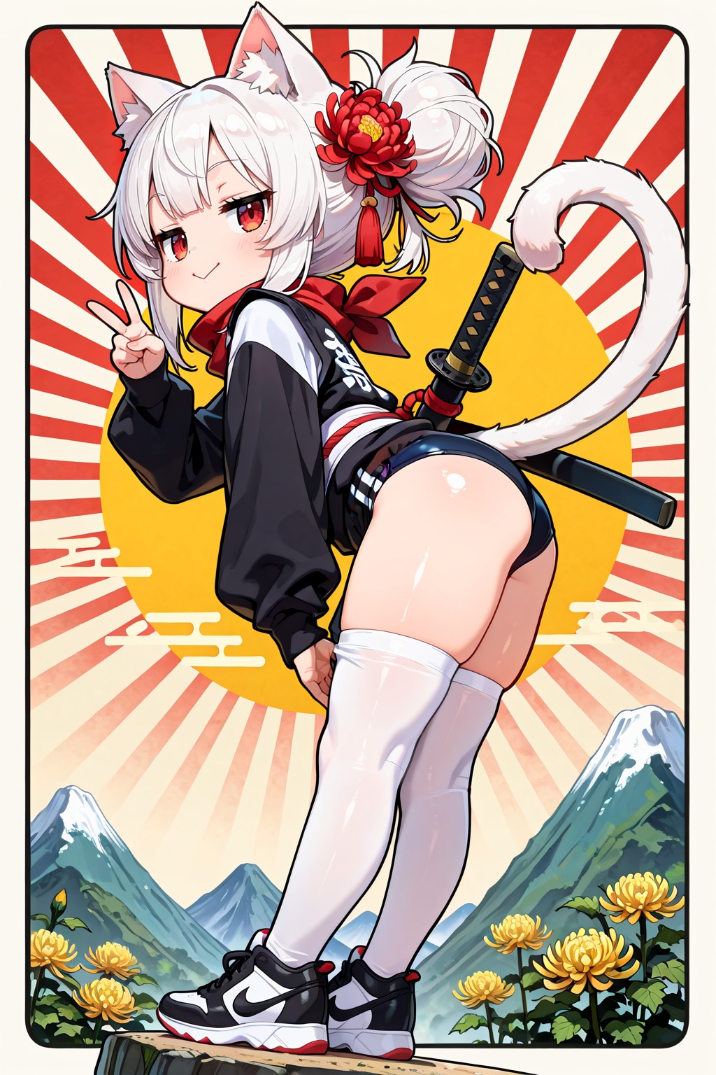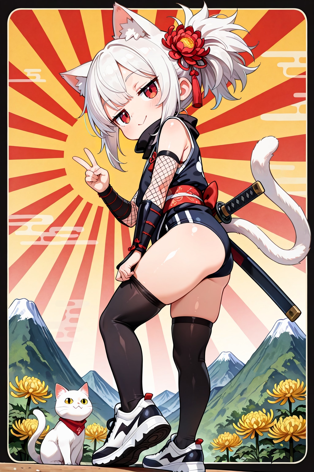 絶対領域仕立ての忍ルマ 菊の花を添えて