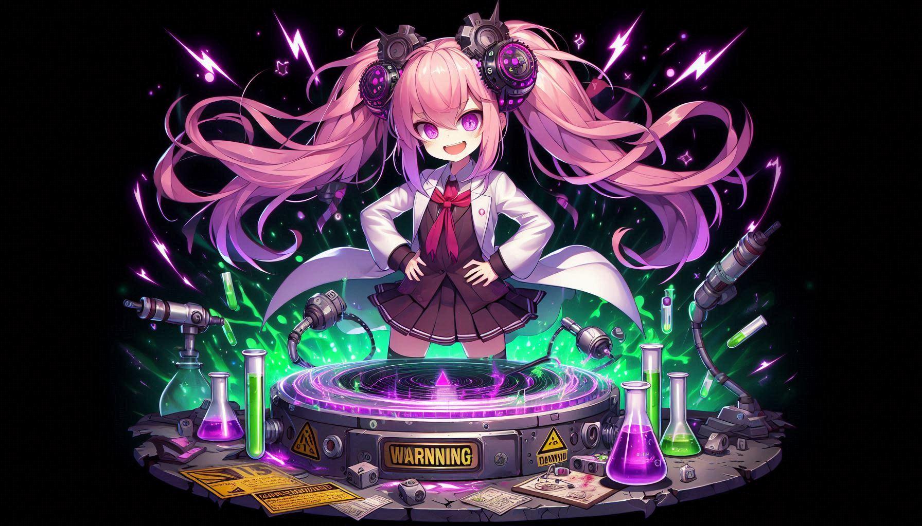 投稿者「一応今回はこっちの企画とAIピクターズさんのお題「ターンテーブル」を合わせて出してもらって、サイエンスが理科寄りになっていたのでもうちょっとマッドサイエンティスト的にってやって出してもらったので少しは考えてます!!」