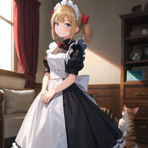4枚目 1girl,cat,maid