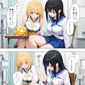 StableDiffusionXLで3枚目を作ったときも同じような感じです。学生服着ているのは女の子ですが。