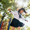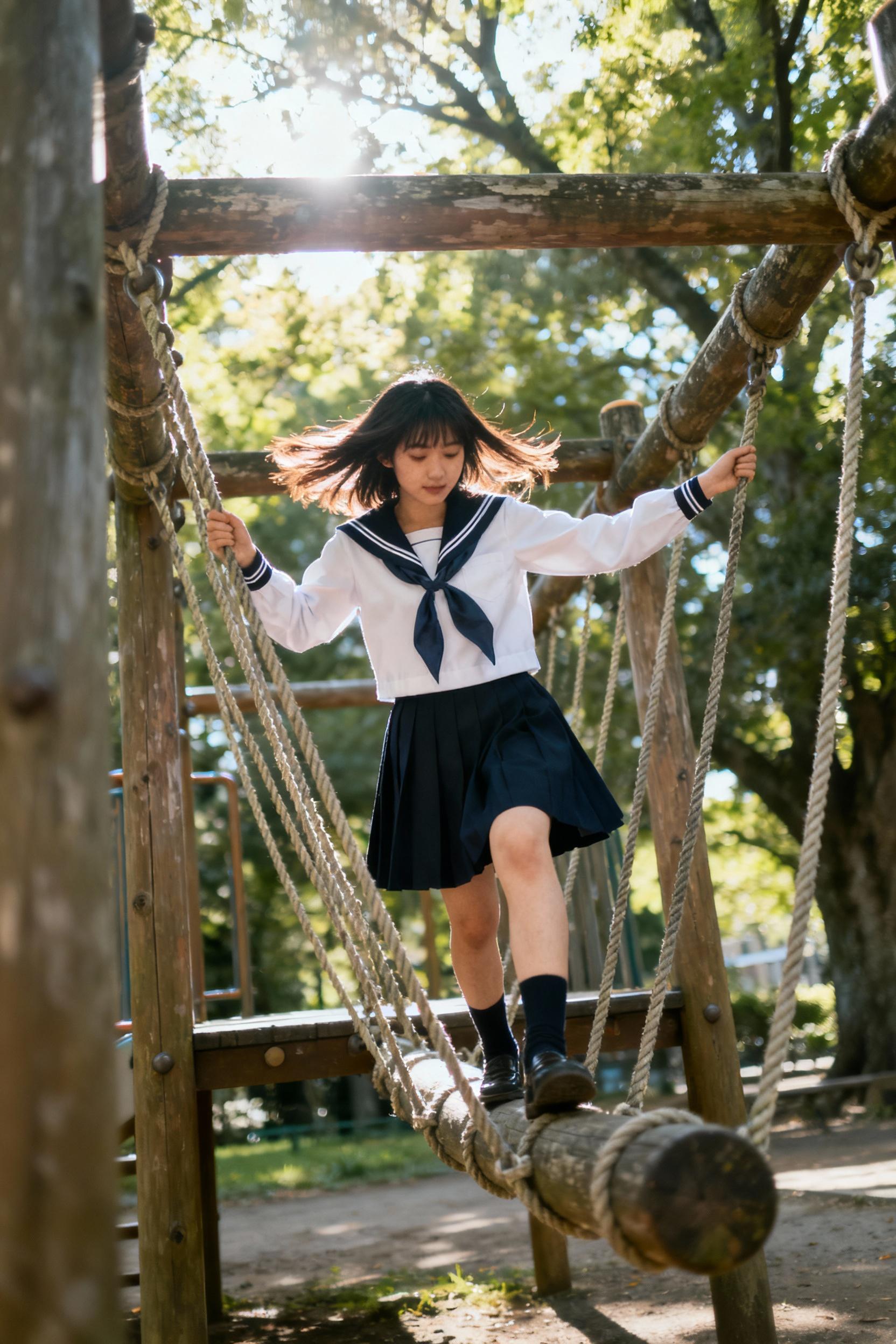 アスレチックで遊ぶ女子