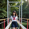 「アスレチックで遊ぶ女子」が2025年10月29日のAIフォトデイリーランキング12位に入り