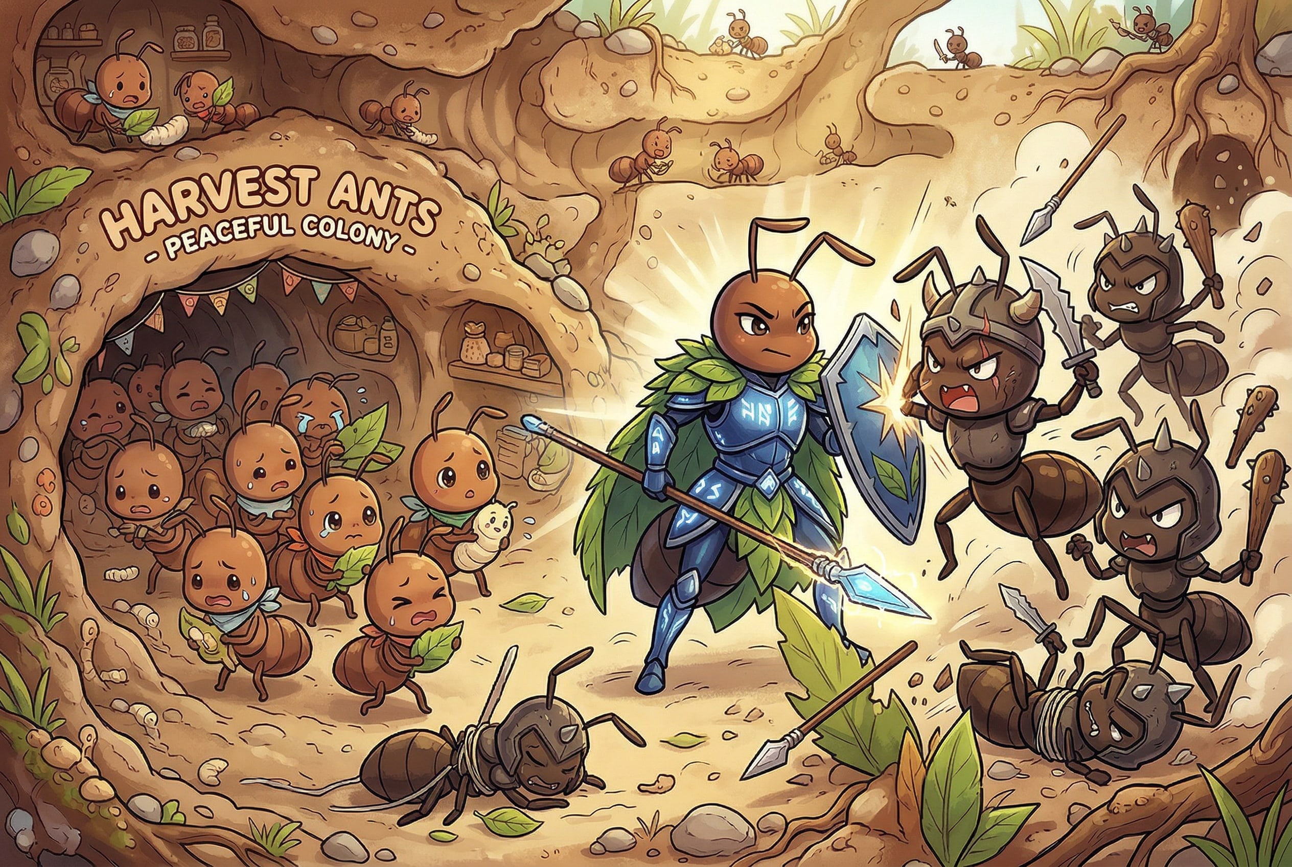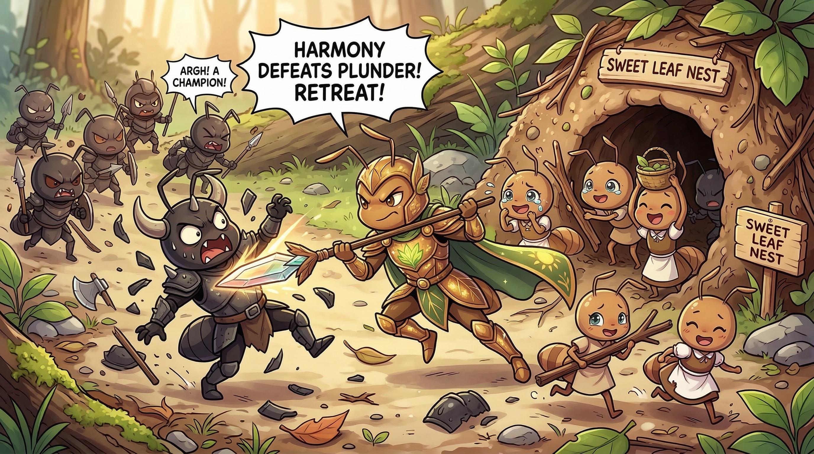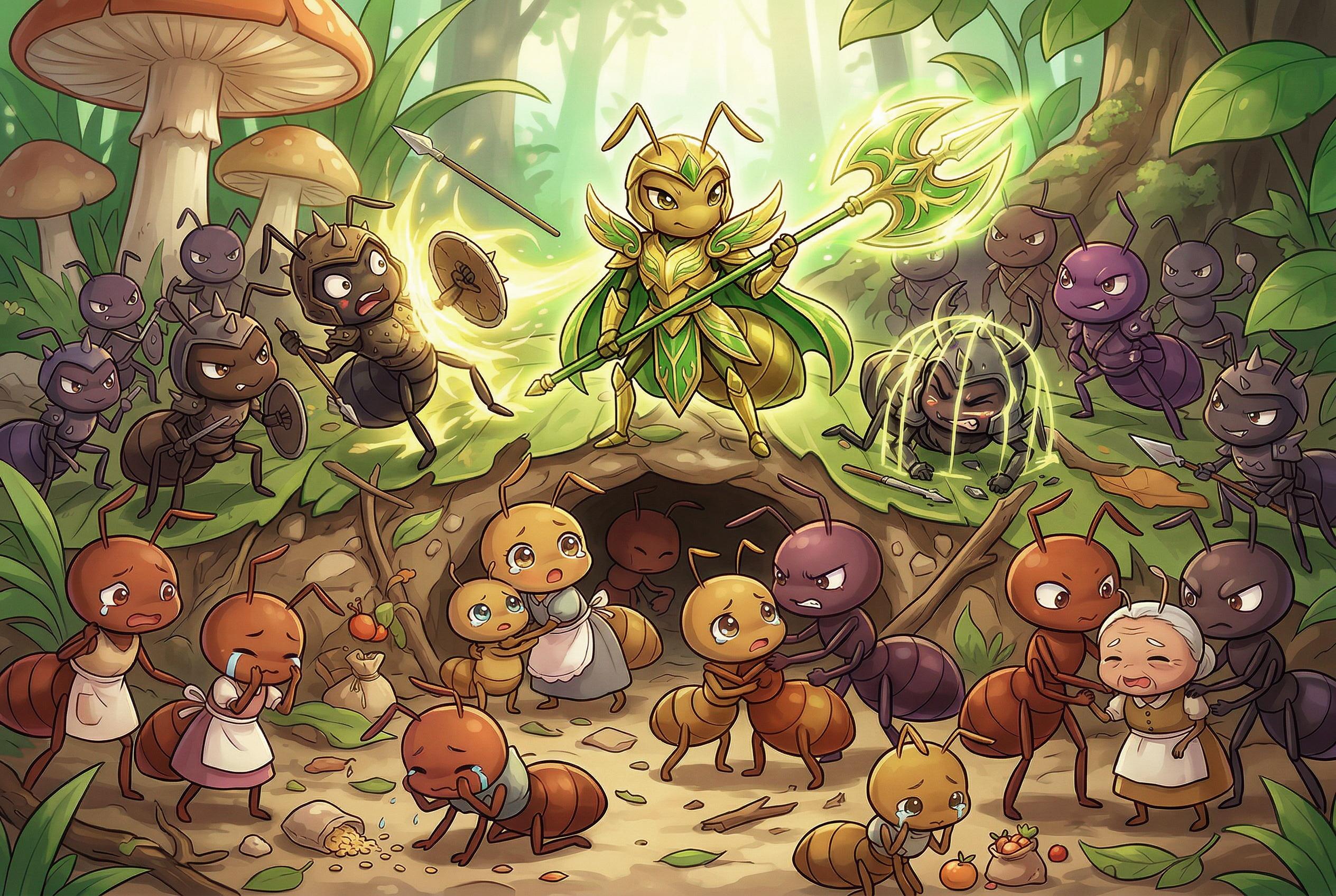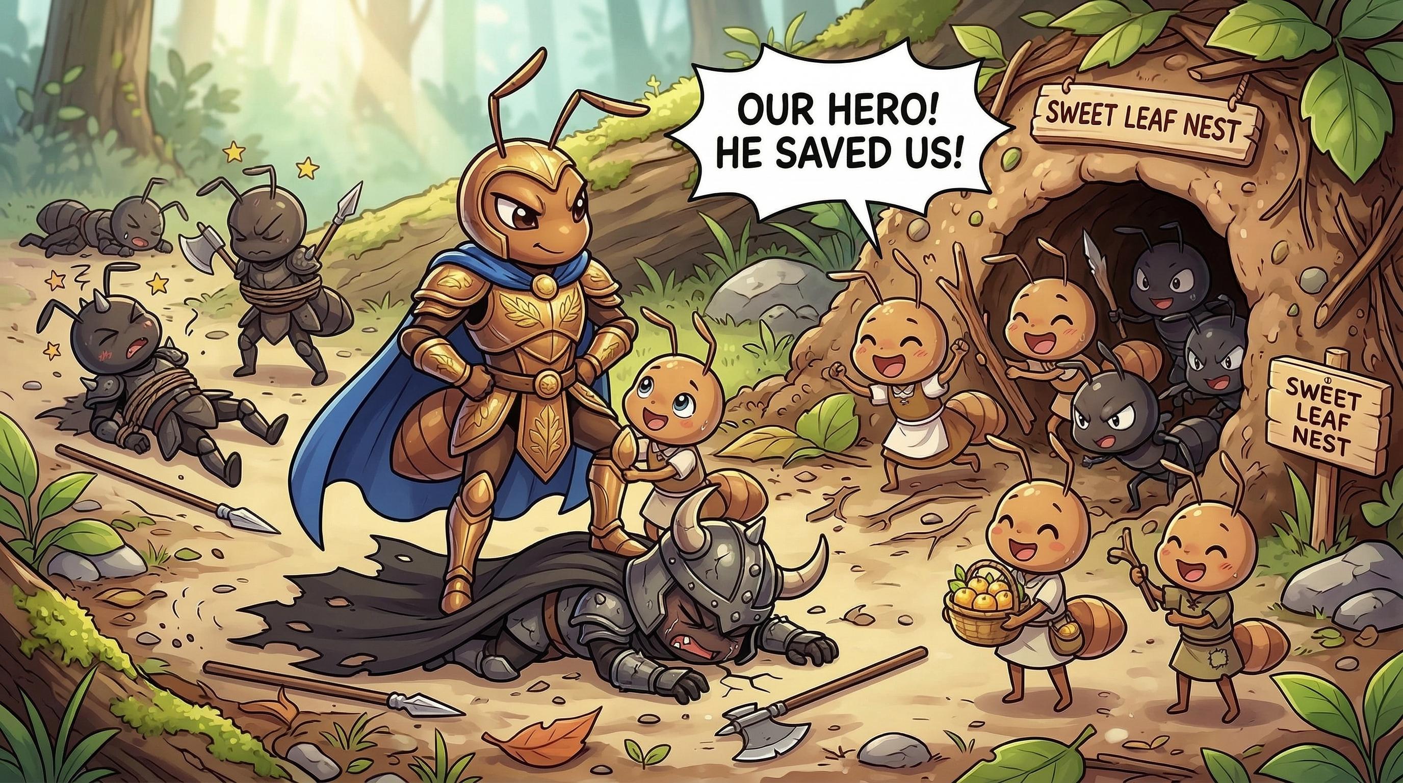 侵略者に立ち向かうヒーロー蟻