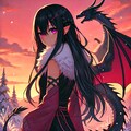 5枚以降は、以前ドラゴンとうちの子で生成しようとしたものの、ドラゴンが出なかった時の作品です。せっかくなので、入れておきます。ドラゴンというより、魔女な感じがします。