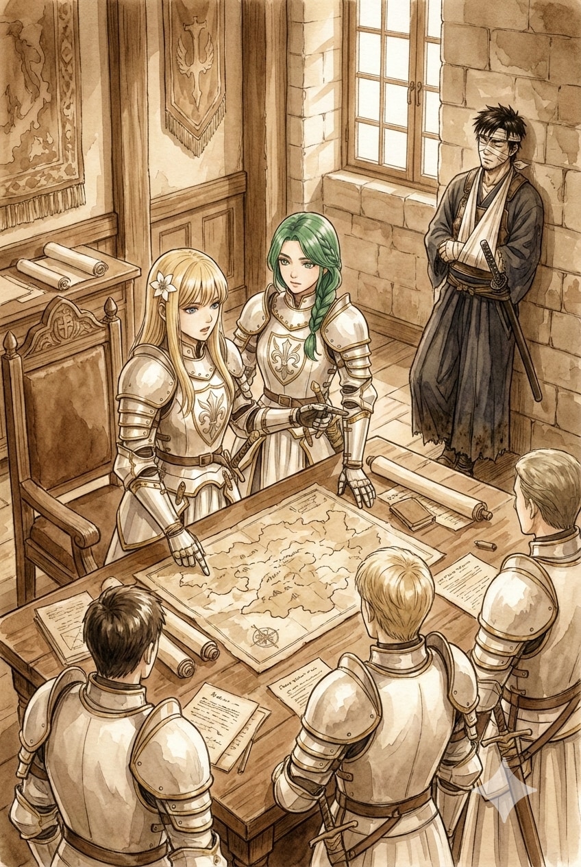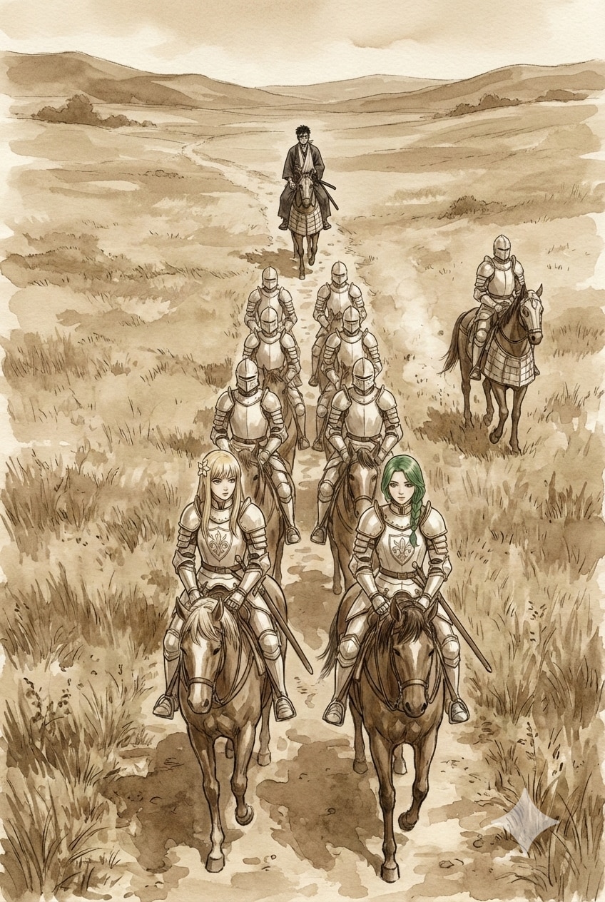 追っているモンスターの情報が手に入るまで、騎士団の困難な任務を共に。翠の人は警戒。