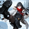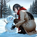 雪だるまを作って破壊する少女。