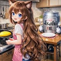 オムレツを焼く小さな女の子