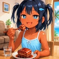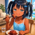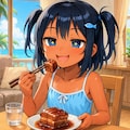 ラフテーを食べるこなつちゃん