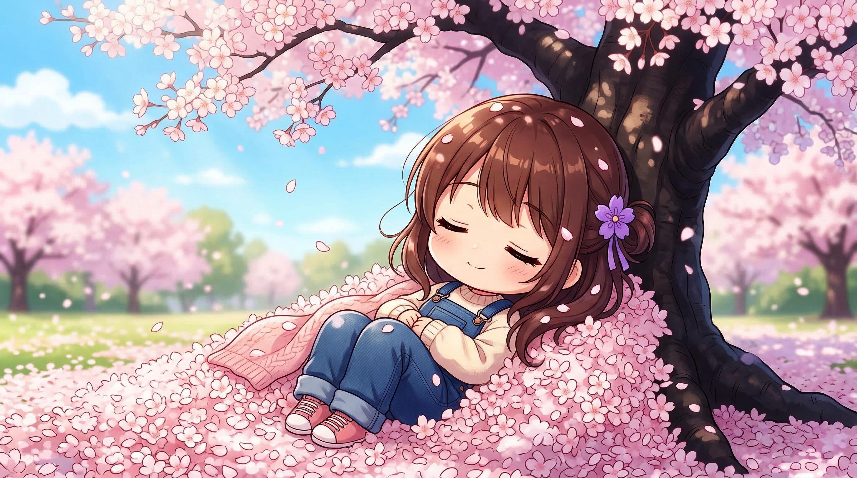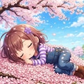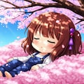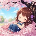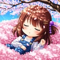 桜に埋もれるスミレちゃん