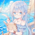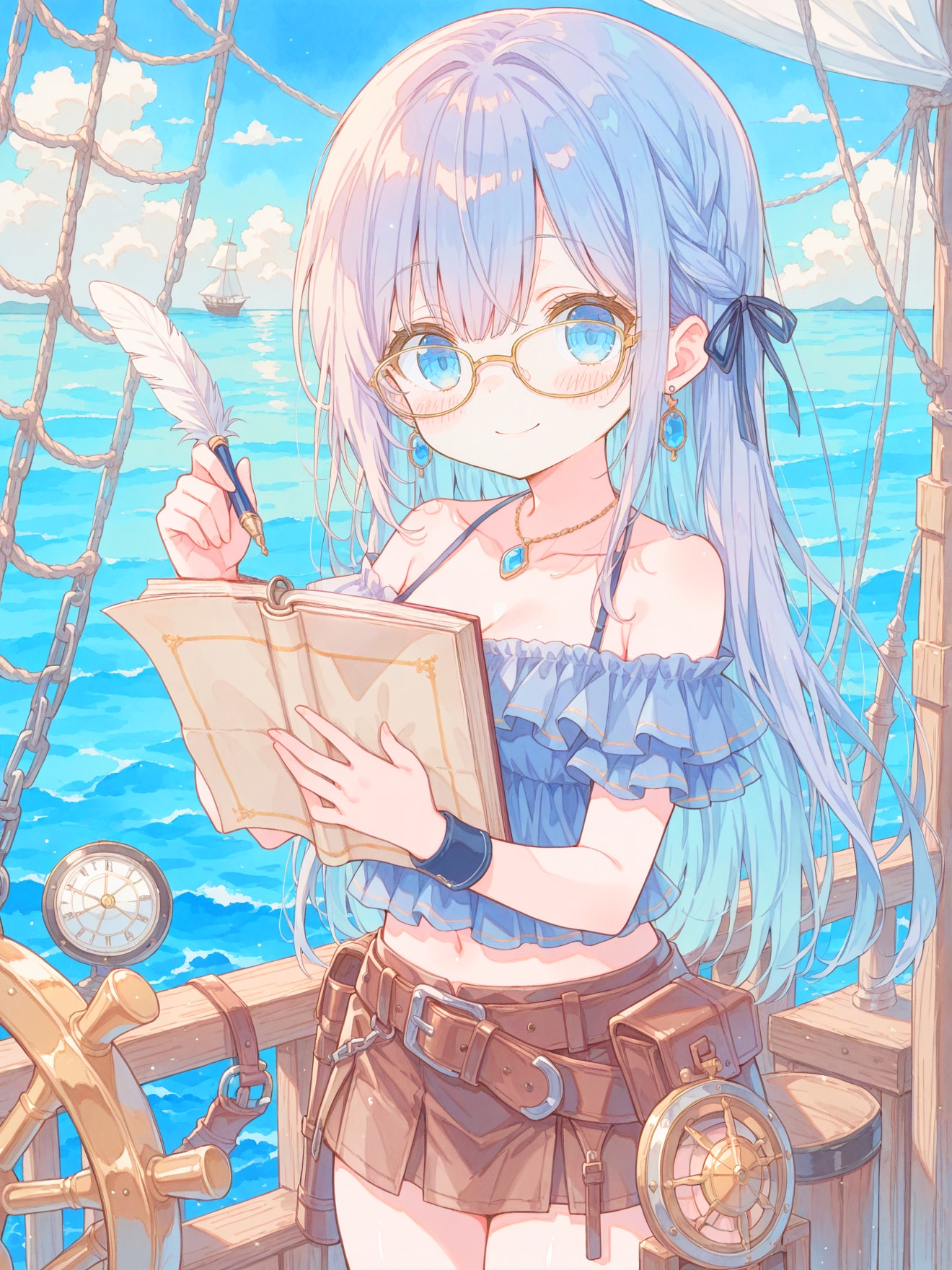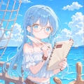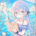 帆船の航海を案内するメガネの航海士の女の子を作ってみました
