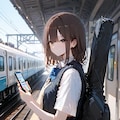 通学中のギター少女