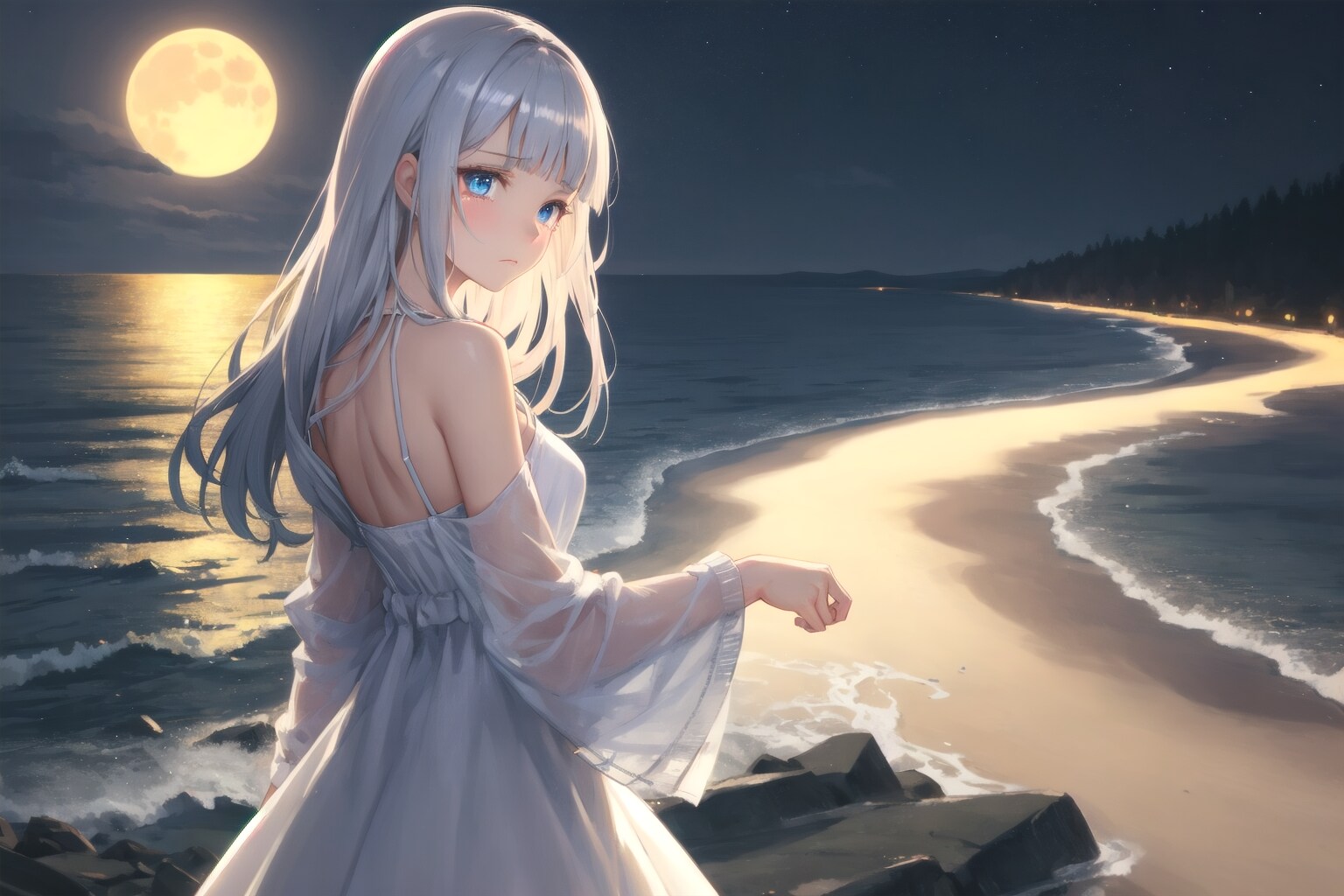 昼間、賑わっていたこの海は、今は誰もいない。