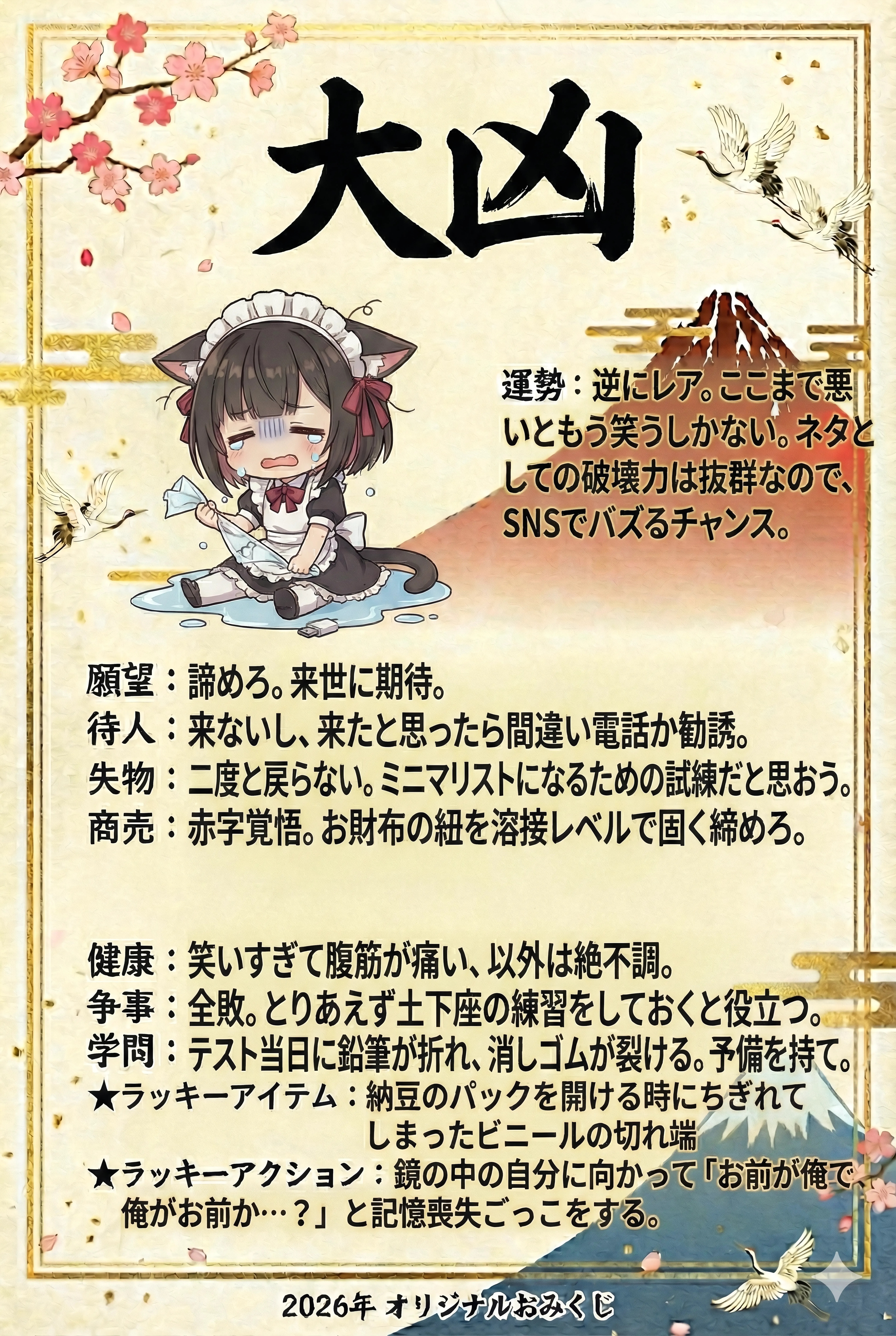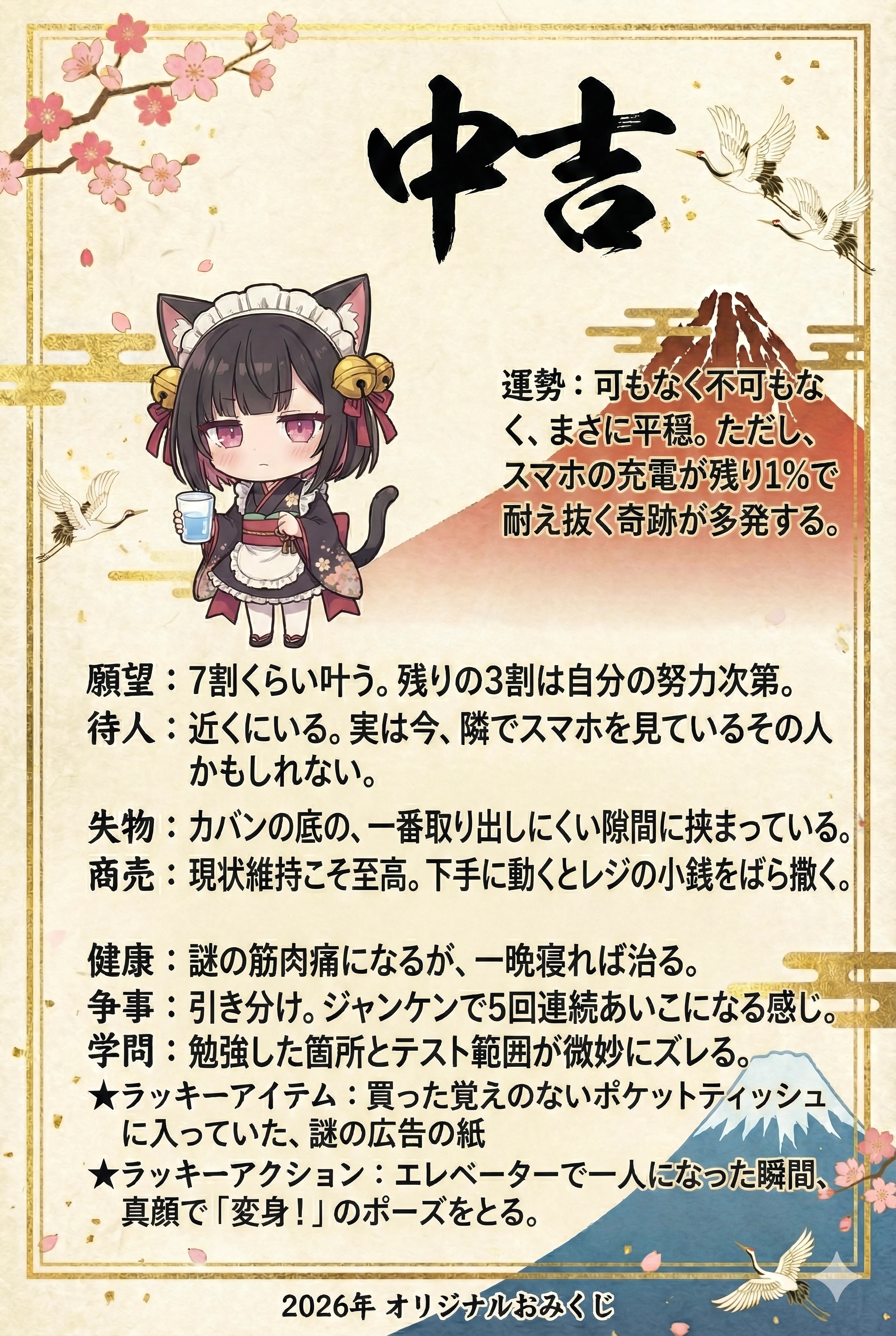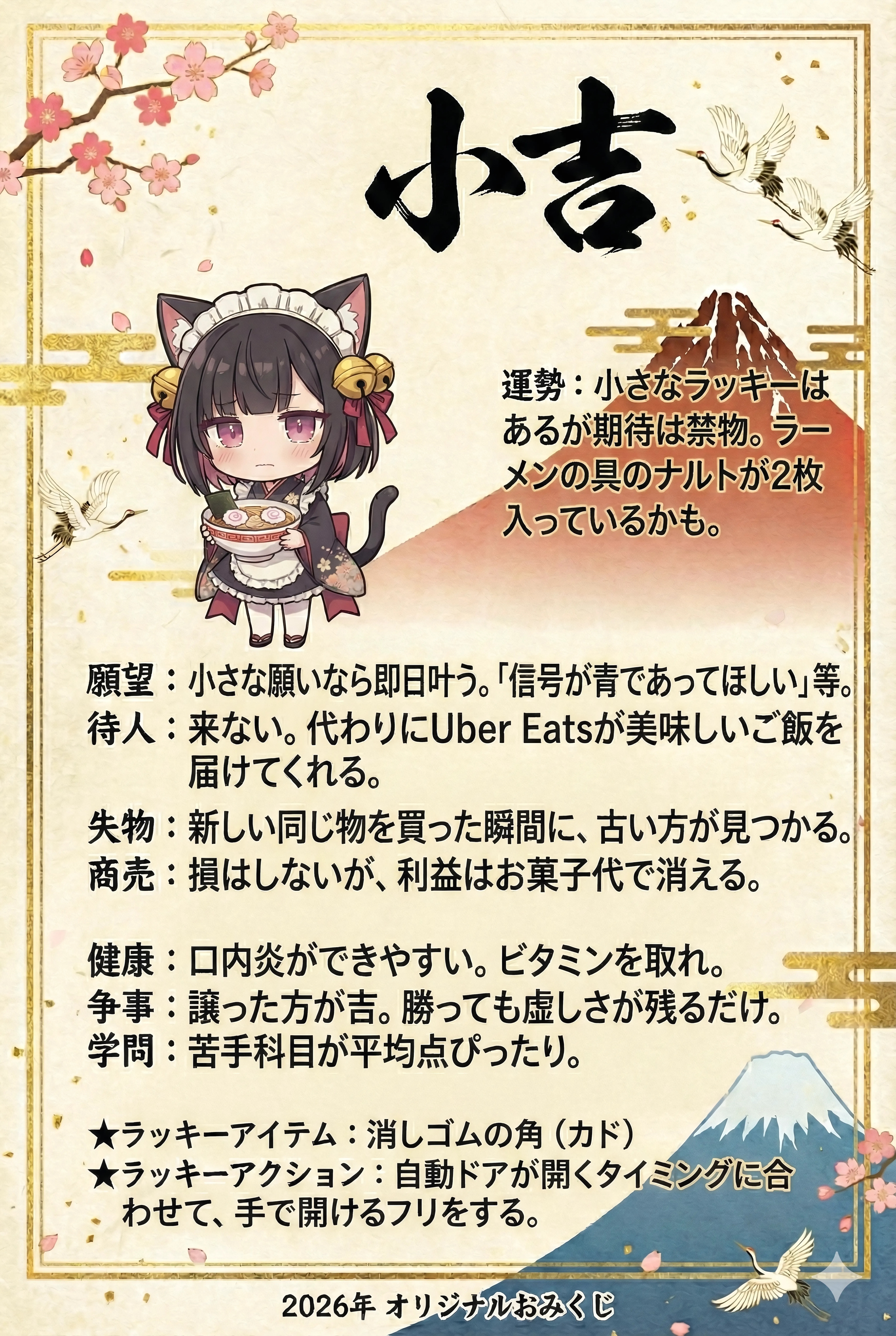 Omikuji 2026/01/01 使用したAI Gemini #女の子 #黒髪 #メイド #うちの子 #ケモミミ #おみくじ #Gemini #ちちぷい年末年始 #mimi #NanobananaPro 呪文 入力なし ノノ 19,276 投稿 フォロー 765 フォロワー 2,152 いろいろ勉強中 ノノさんの他の作品 ノノさんの他の作品 Tiny Steps in the Orangery ノノ Azure Bodice by the Window ノノ Wind Amongst the Marigolds ノノ Queen of the Crescent Moon ノノ Framing the Joy ノノ Tiny Steps in the Orangery ノノ Azure Bodice by the Window ノノ Wind Amongst the Marigolds ノノ Queen of the Crescent Moon ノノ Framing the Joy ノノ Dragon Girl’s School Day ノノ