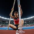 棒高跳びの選手にとっては棒高跳びの棒が相棒です。