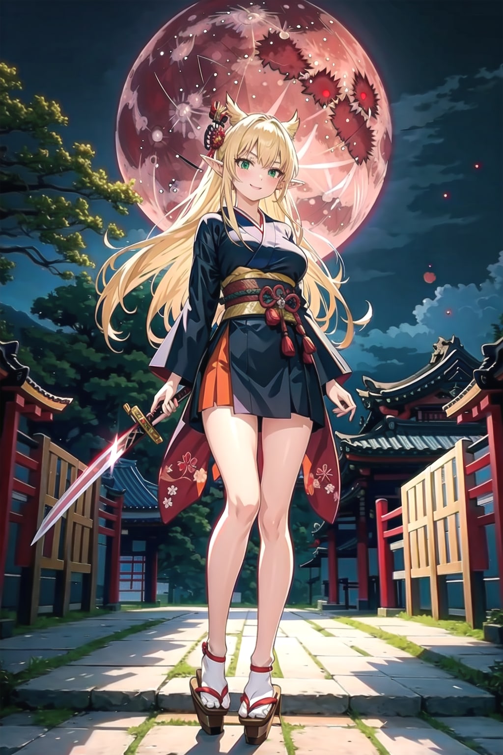 赤い月の下で