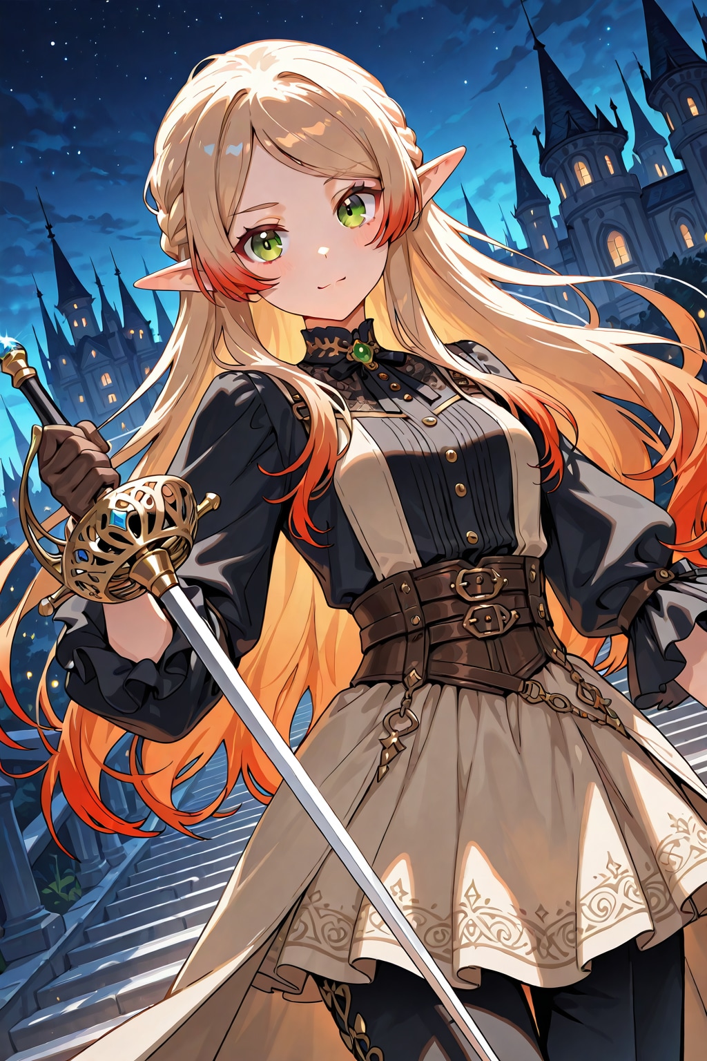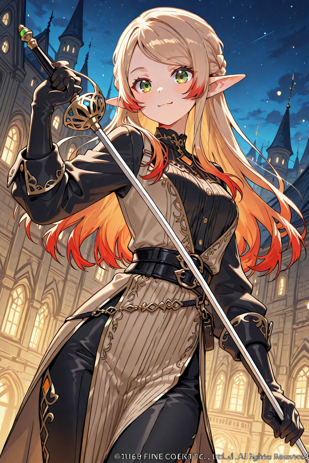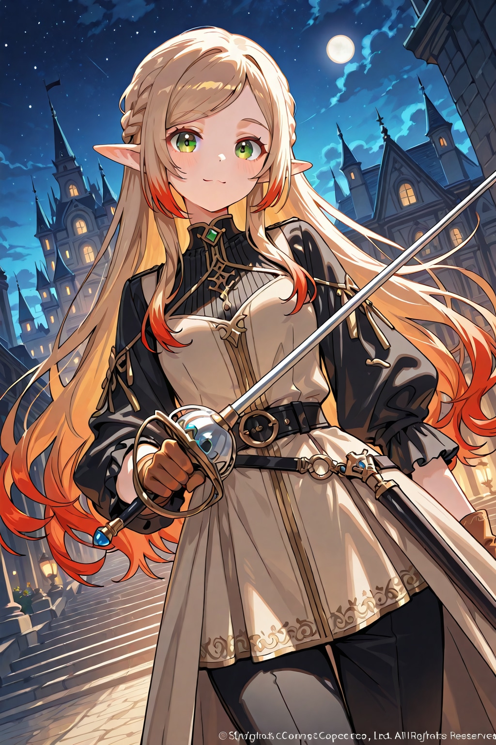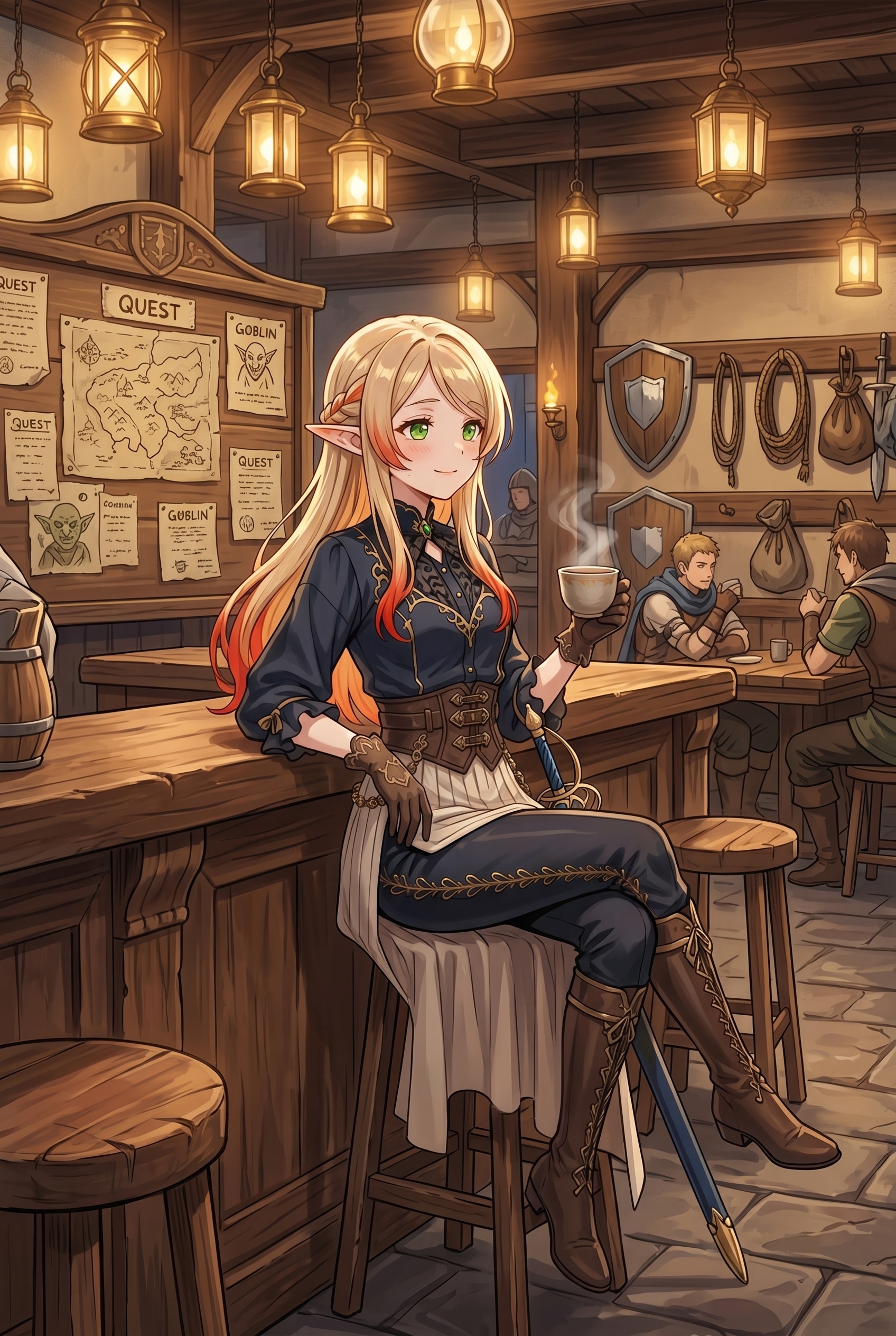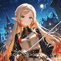 PixAI Mio.2でちち生で作ったエルフさんの戦闘シーンと戦闘後の休憩シーンを描いてもらいました