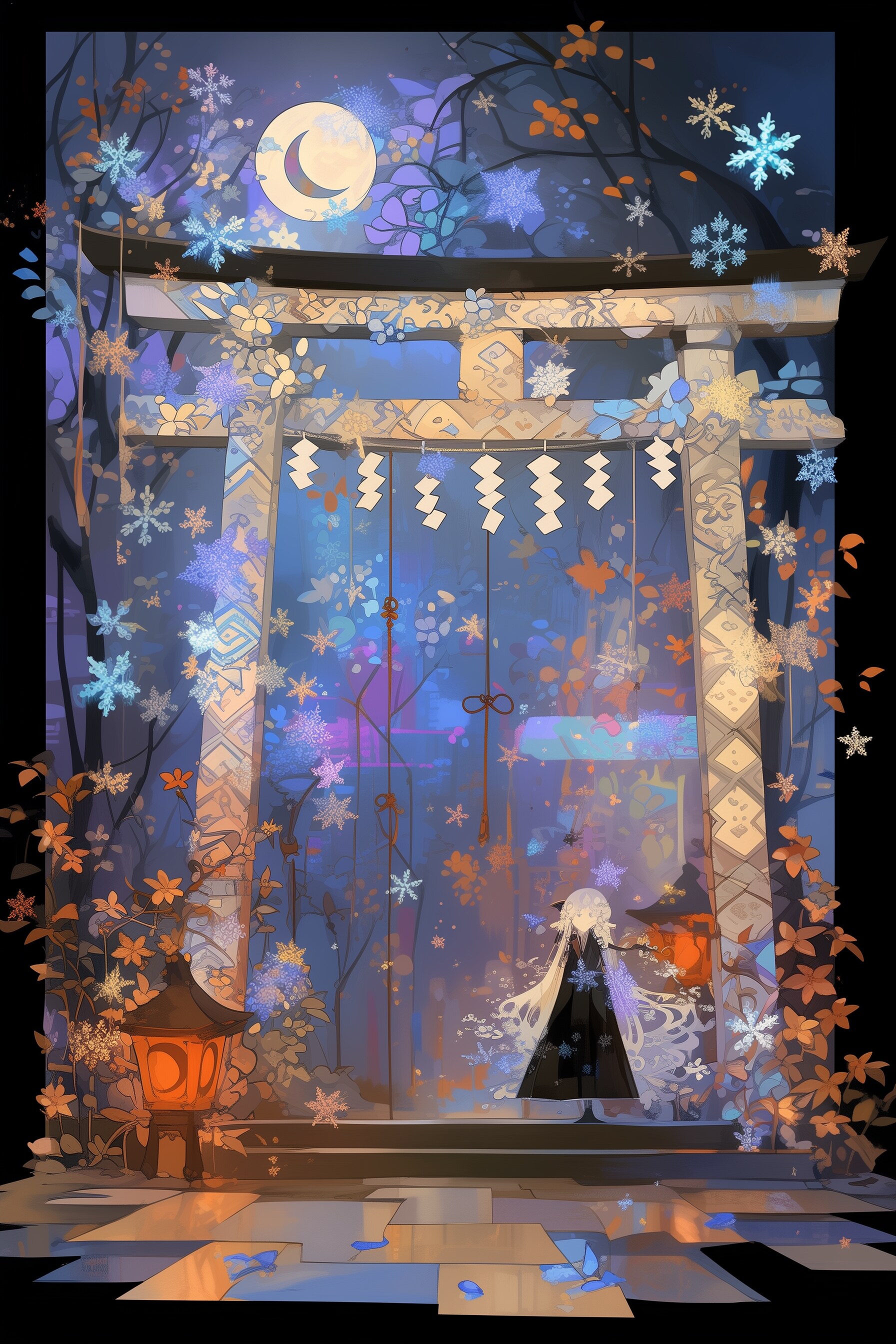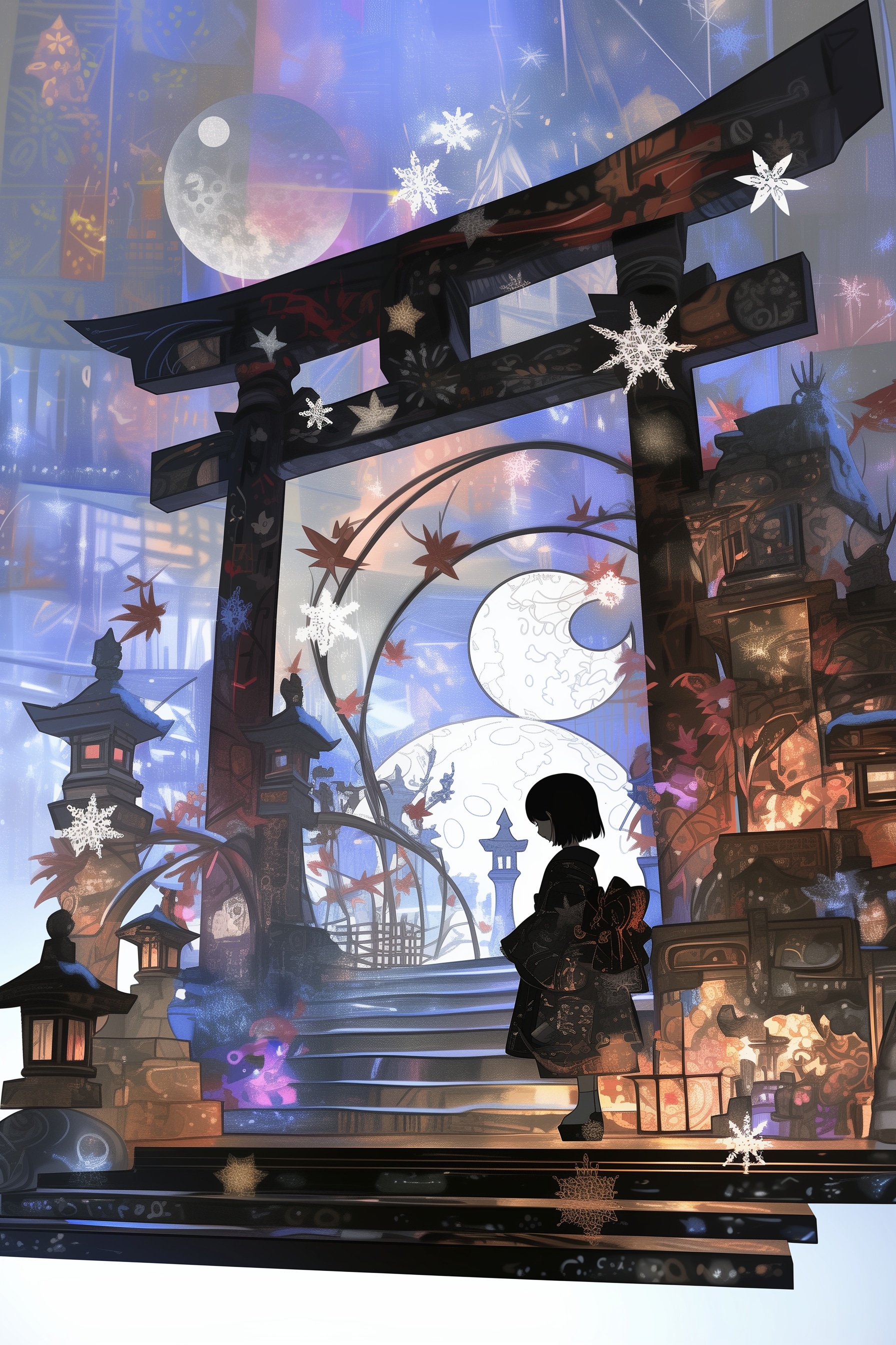 雪降る神社にて