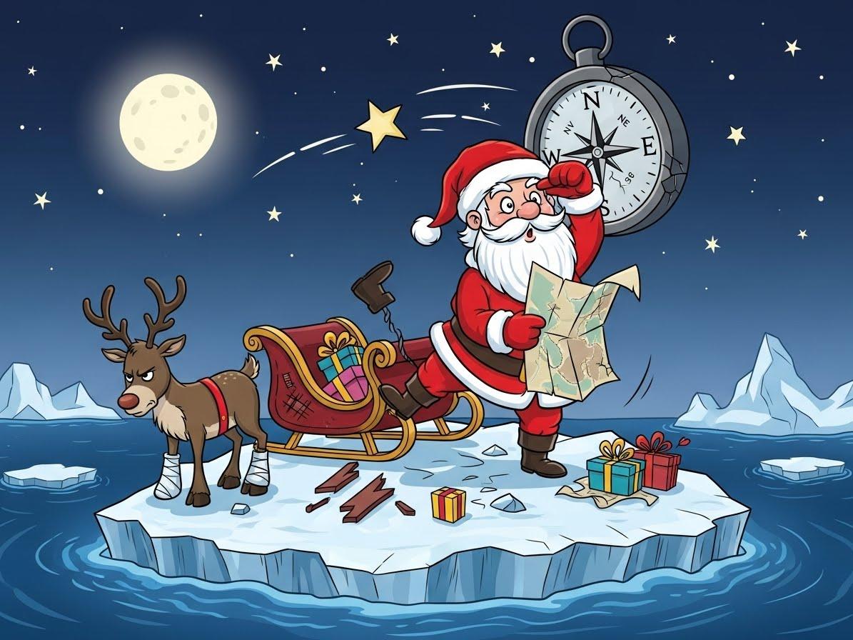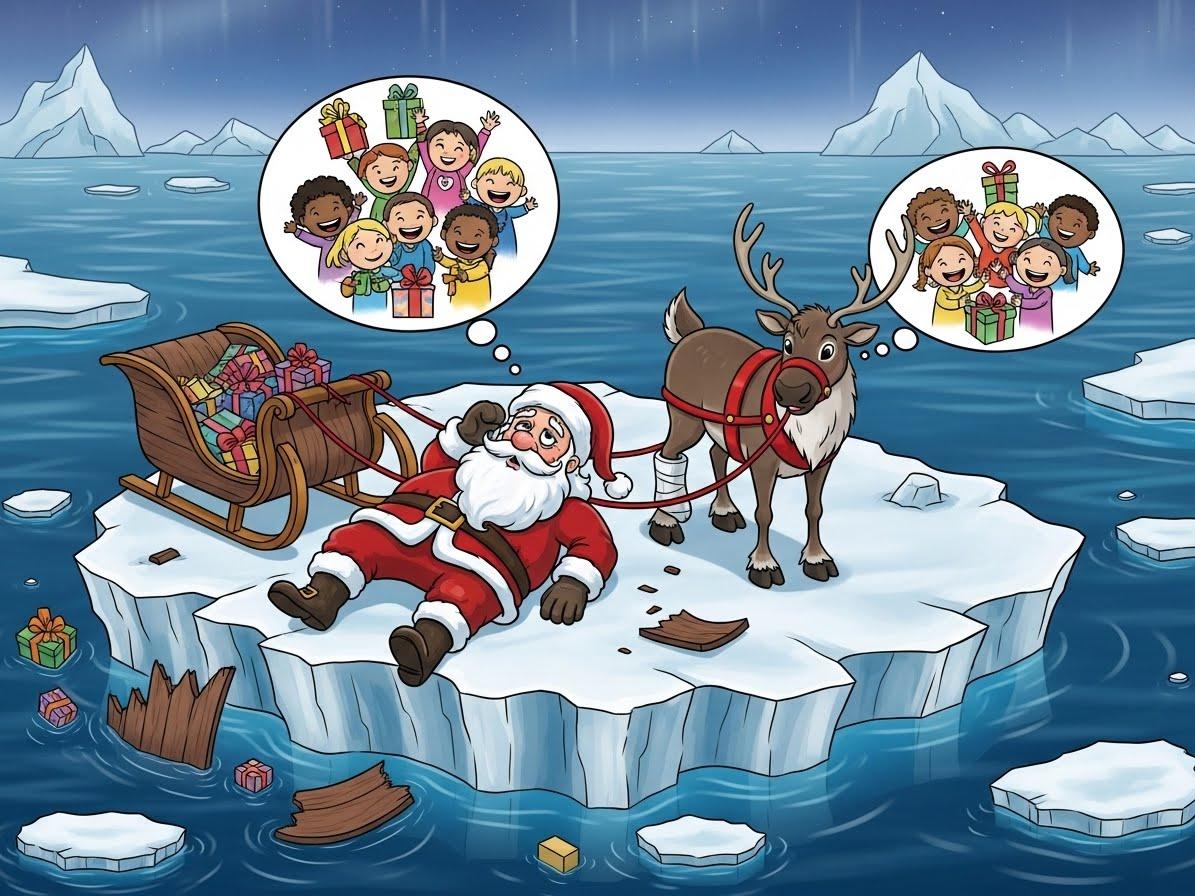 サンタクロースは途方に暮れながら、思うはやはりプレゼントを待つ子どもたちのことでした。