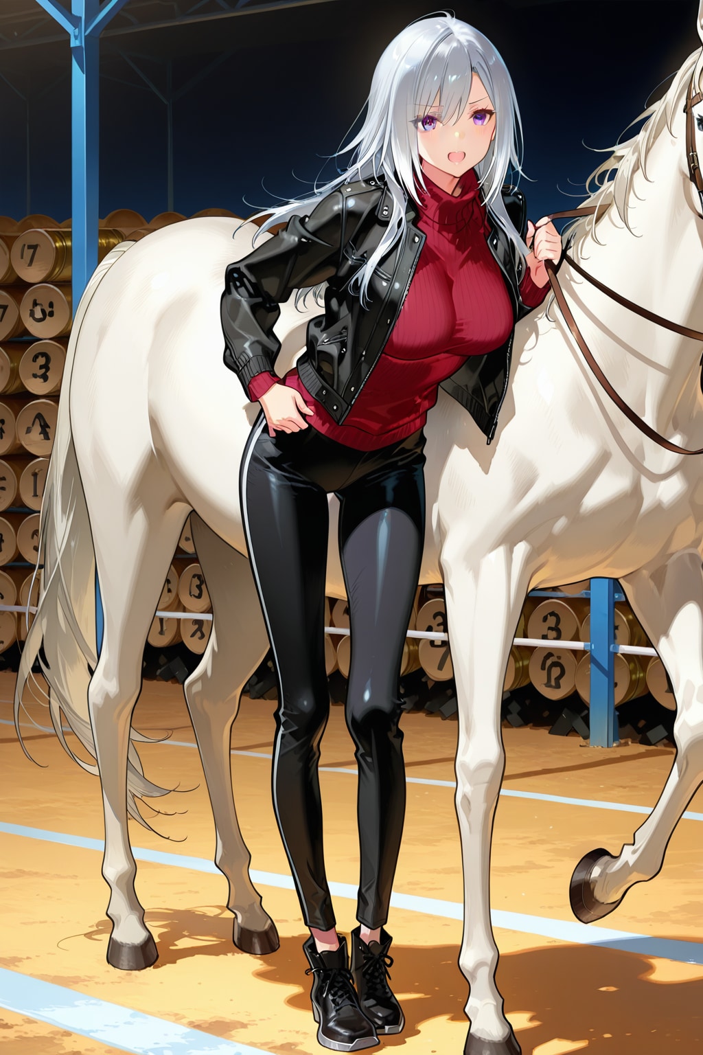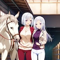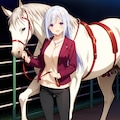 昔私自身が牧場の練習場で乗ったことがあるのは栗毛と黒鹿毛の子だったけど、可愛い女の子には白馬が似合いそう。