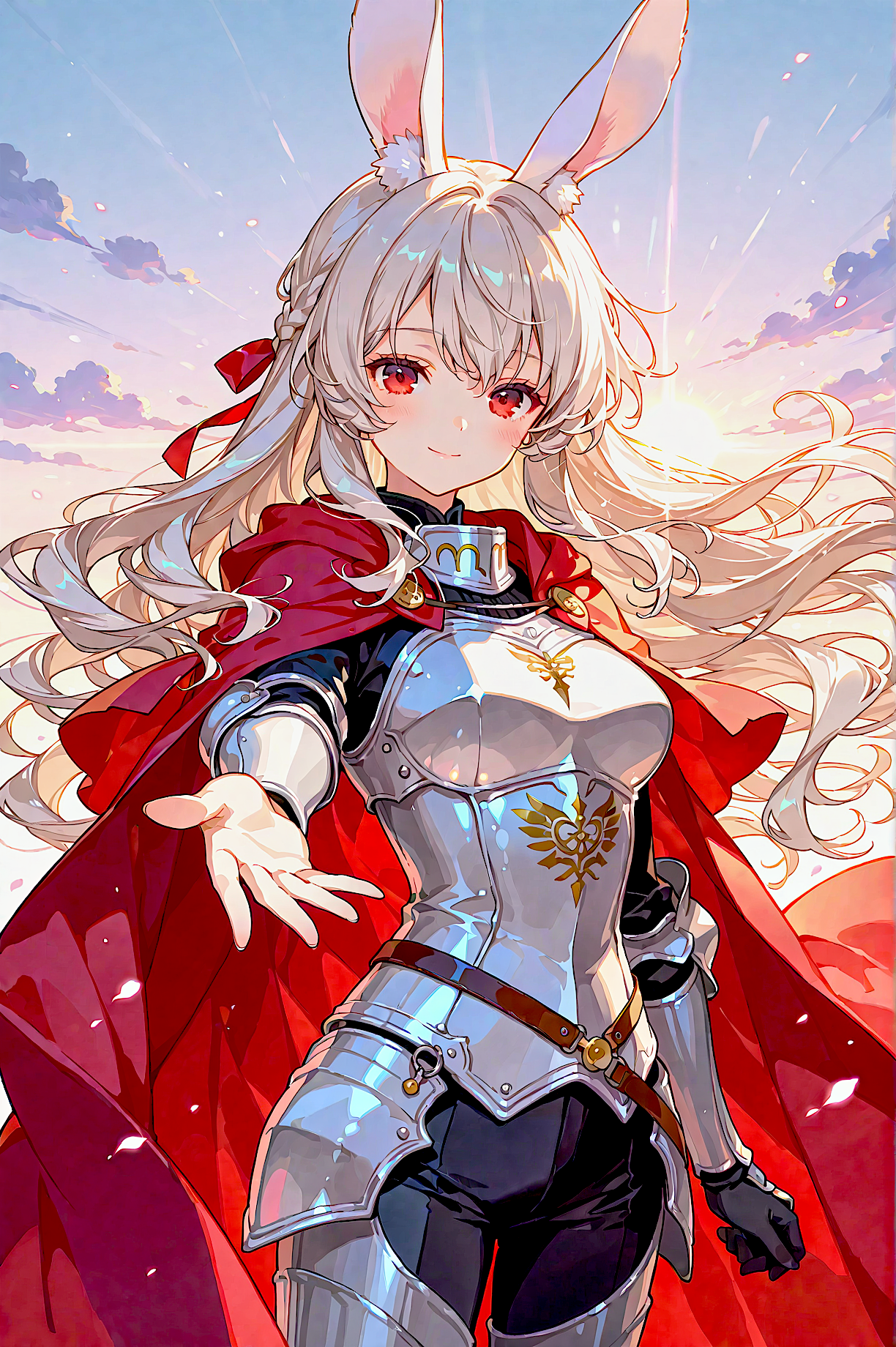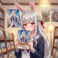 ・こちらは人物の指定を増やし、「添付した画像に描かれているうさぎの耳の騎士と似ている」と書いたところ、よりエリアーヌに近くなりました。プロンプトに記述があって人物の重要度が上がった分、本の重要度が下がって大きさが小さくなっています。