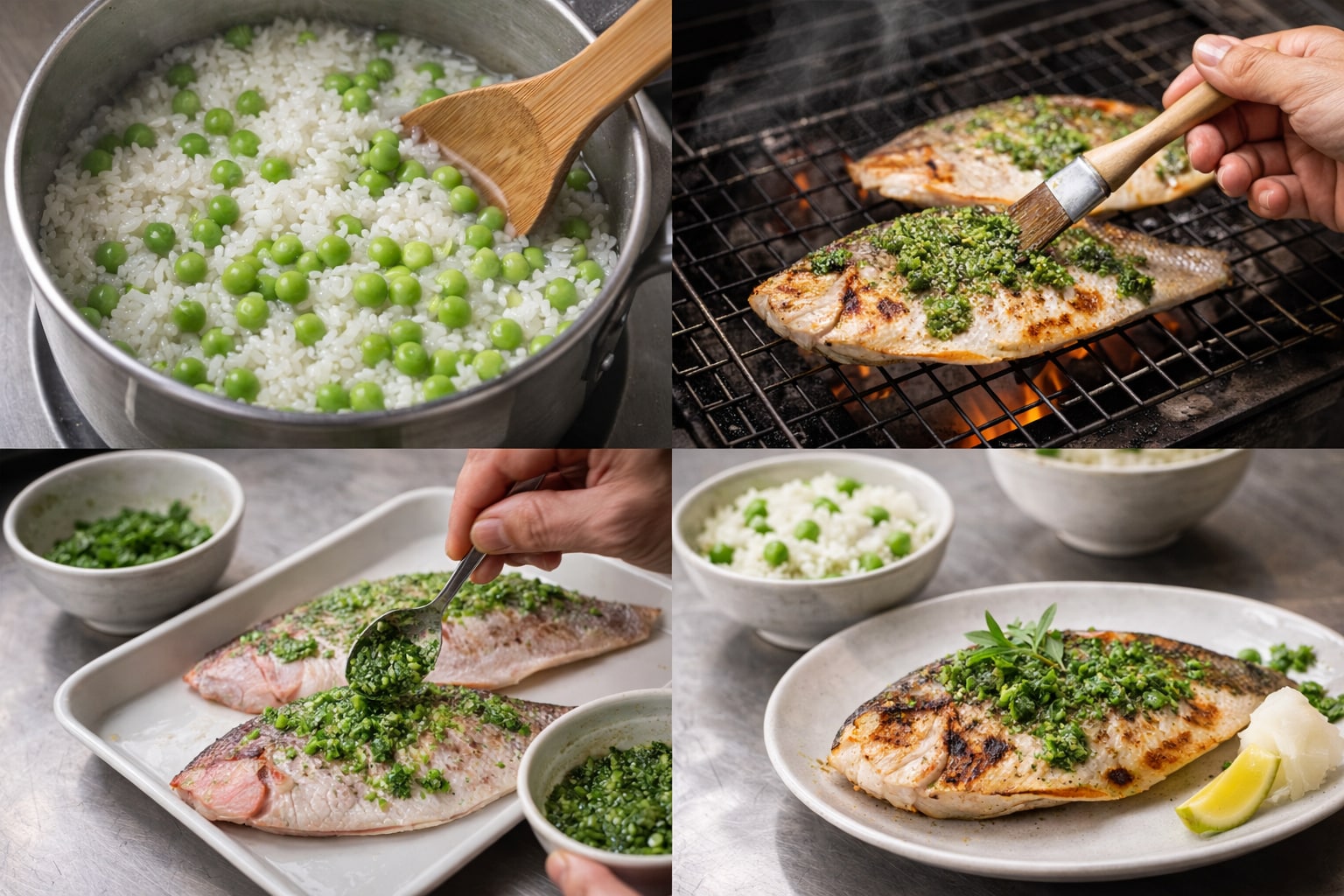 焼き目の美しさ、木の芽の香り、豆の青み、器の余白。