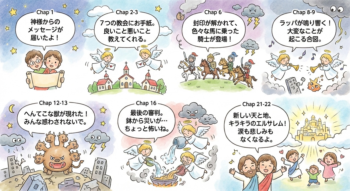 試しに今回は、あの悪魔の聖書と呼ばれる「ギガス写本」やMMRでお馴染みww「ヨハネの黙示録」を、その方法で解説イラストを作ってもらったらこうなりました😊♪。