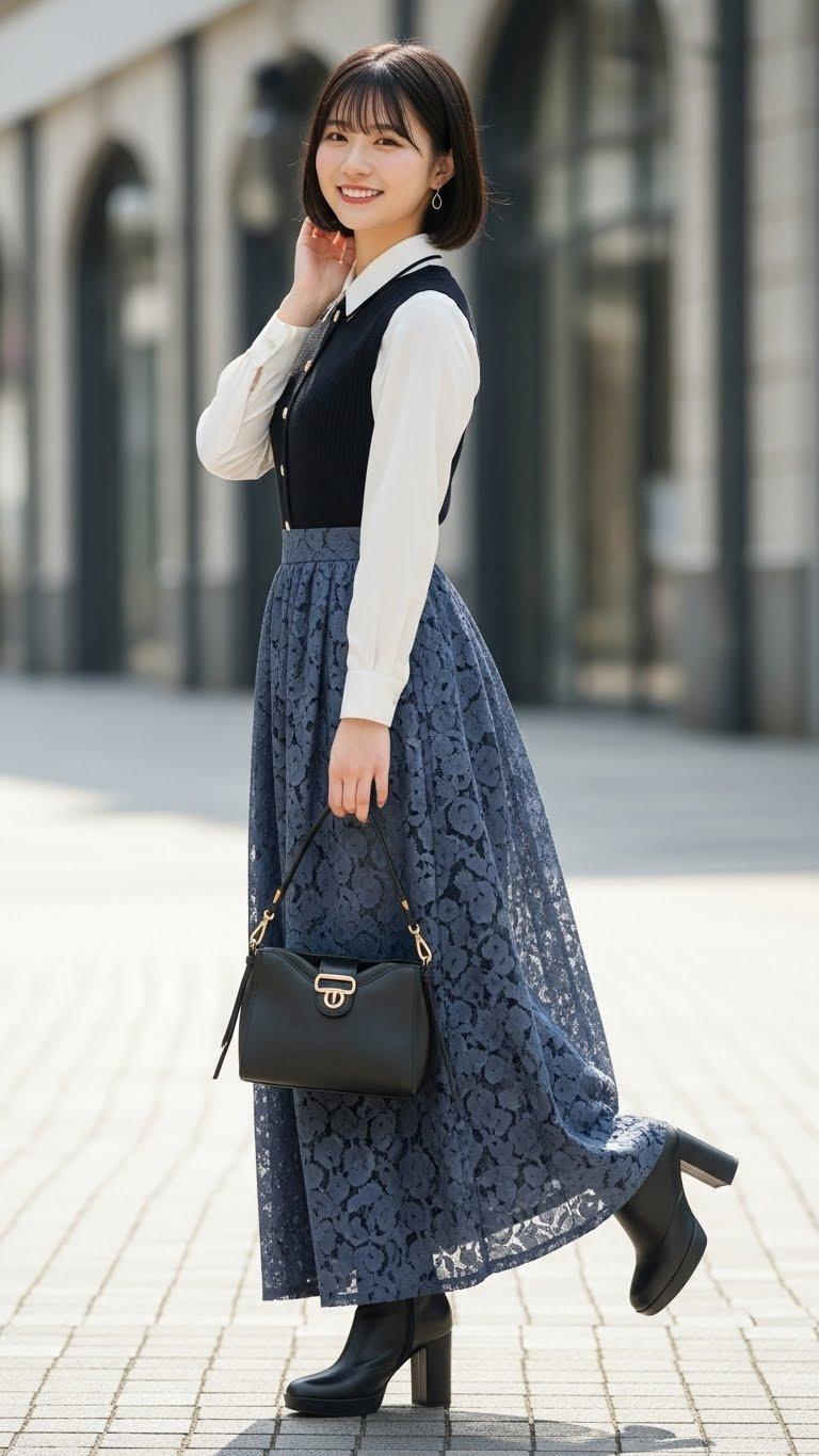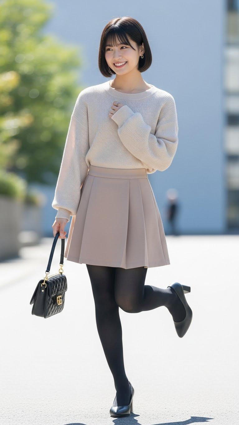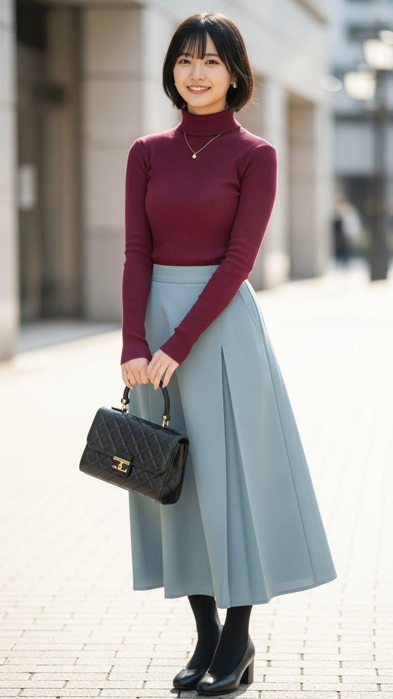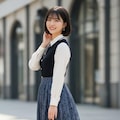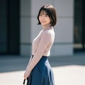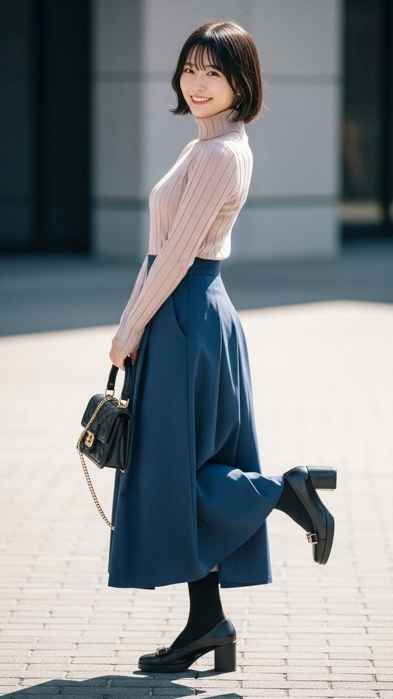 デートの装い。    ポーズやファッション、ファッションに対する小物のコーディネート、背景は限定せずにAIが選んでいます。