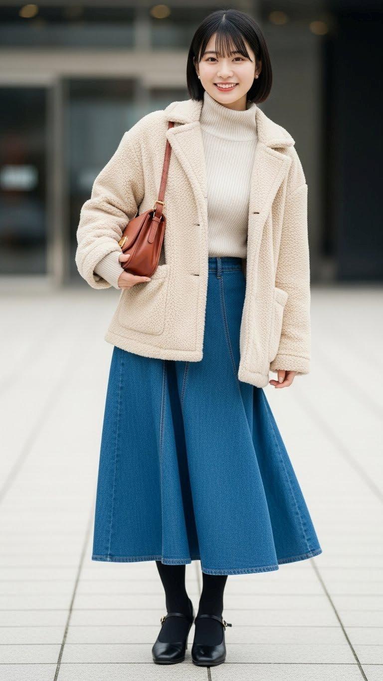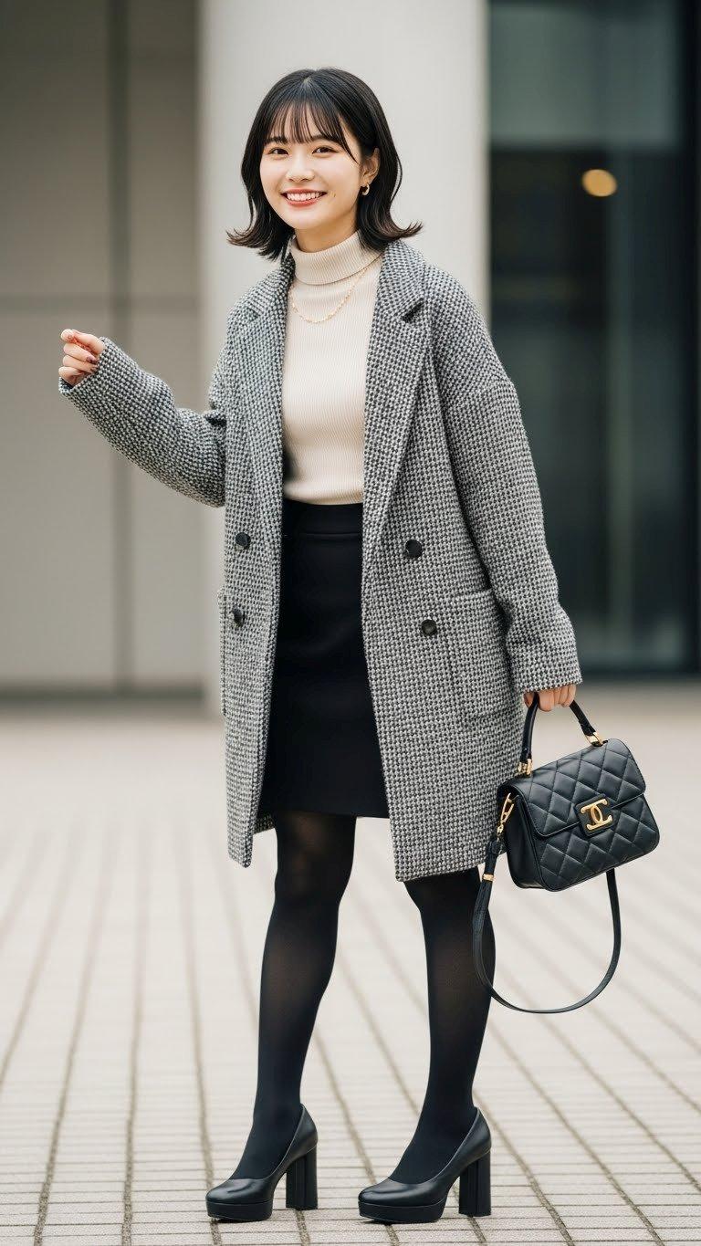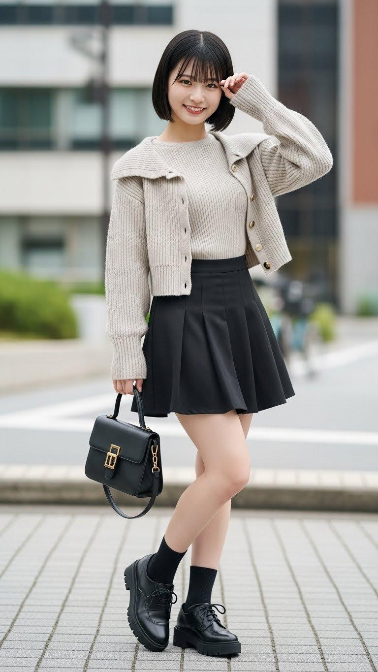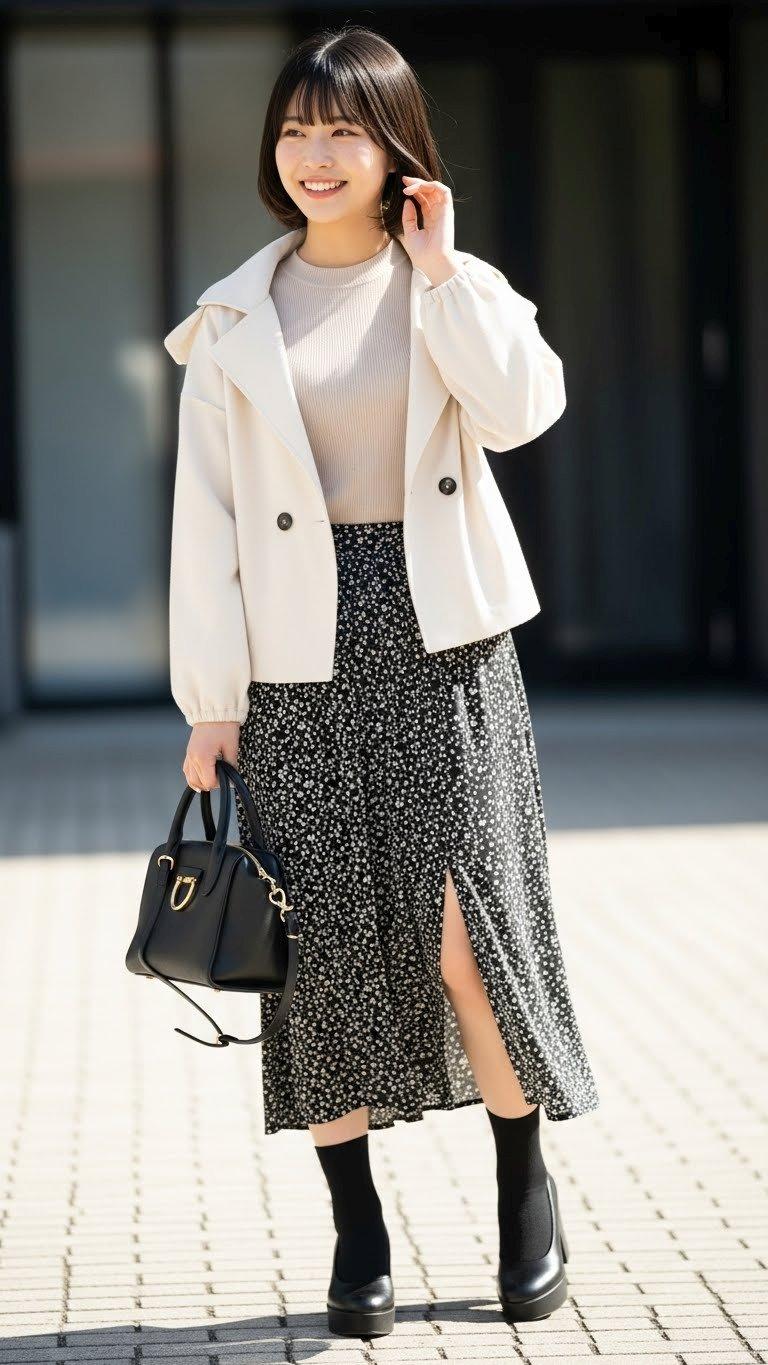 デートの装い。    ポーズやファッション、ファッションに対する小物のコーディネート、背景は限定せずにAIが選んでいます。